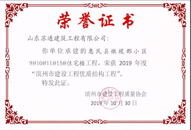 山東蘇通建筑工程有限公司,創(chuàng)建于2009年8月。目前擁有房屋建筑工程施工總承包壹級、市政公用工程施工總承包叁級、水利水電工程施工總承包叁級資質(zhì),同時還具有建筑裝修裝飾工程專業(yè)承包貳級、消防設(shè)施工程專業(yè)承包貳級、鋼結(jié)構(gòu)工程專業(yè)承包叁級、建筑機(jī)電安裝工程專業(yè)承包叁級等專業(yè)承包資質(zhì)。 公司總部坐落于山東省濱州市濱城區(qū)黃河十二路877號,現(xiàn)有辦公面積約2000平方米,機(jī)構(gòu)設(shè)黨支部工會辦公室、總經(jīng)理辦公室、綜合辦公室、工程管理部、經(jīng)營預(yù)算部、資產(chǎn)財務(wù)部、材料設(shè)備部、運行管理部、法律事務(wù)部等多個職能部門。公司管理體系已經(jīng)通過了GB/T 19001及GB/T 50430質(zhì)量管理體系、GB/T 24001環(huán)境管理體系(EMS)、GB/T 28001職業(yè)健康安全管理體系(OHSMS)等體系的認(rèn)證。 公司承建完工了濱州市建大教師之家、建大清怡苑、香格里拉水岸綠城住宅小區(qū)、雙泰建大城、曲阜崇德公館住宅小區(qū)、北海新區(qū)御景藍(lán)灣住宅小區(qū)、沾化德榮國際華城住宅小區(qū)、惠民橄欖郡住宅小區(qū)等工程項目,目前在建工程項目有:濱州市頤高國際電子商務(wù)產(chǎn)業(yè)園住宅小區(qū)項目、濱州市東盛國際項目、高新區(qū)建大中央華府住宅小區(qū)項目、濱州市融匯新里程住宅小區(qū)項目、濱州市建大秦皇壹號住宅小區(qū)項目、濱州市森林花...